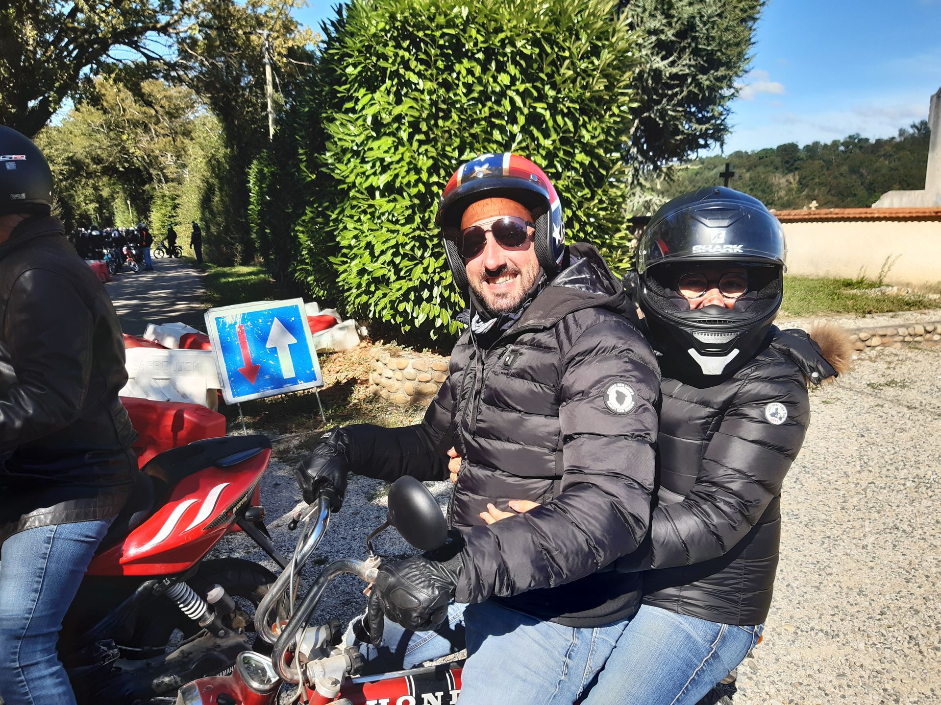 Parcours du matin du côté de Villars-les-Dombes où le public était nombreux sur le bord des trottoirs attendant le passage de la vague des conscrits. Ils ont eu l’heureuse surprise de saluer toute une tribu de deux roues, avant l’arrivée de la vague.