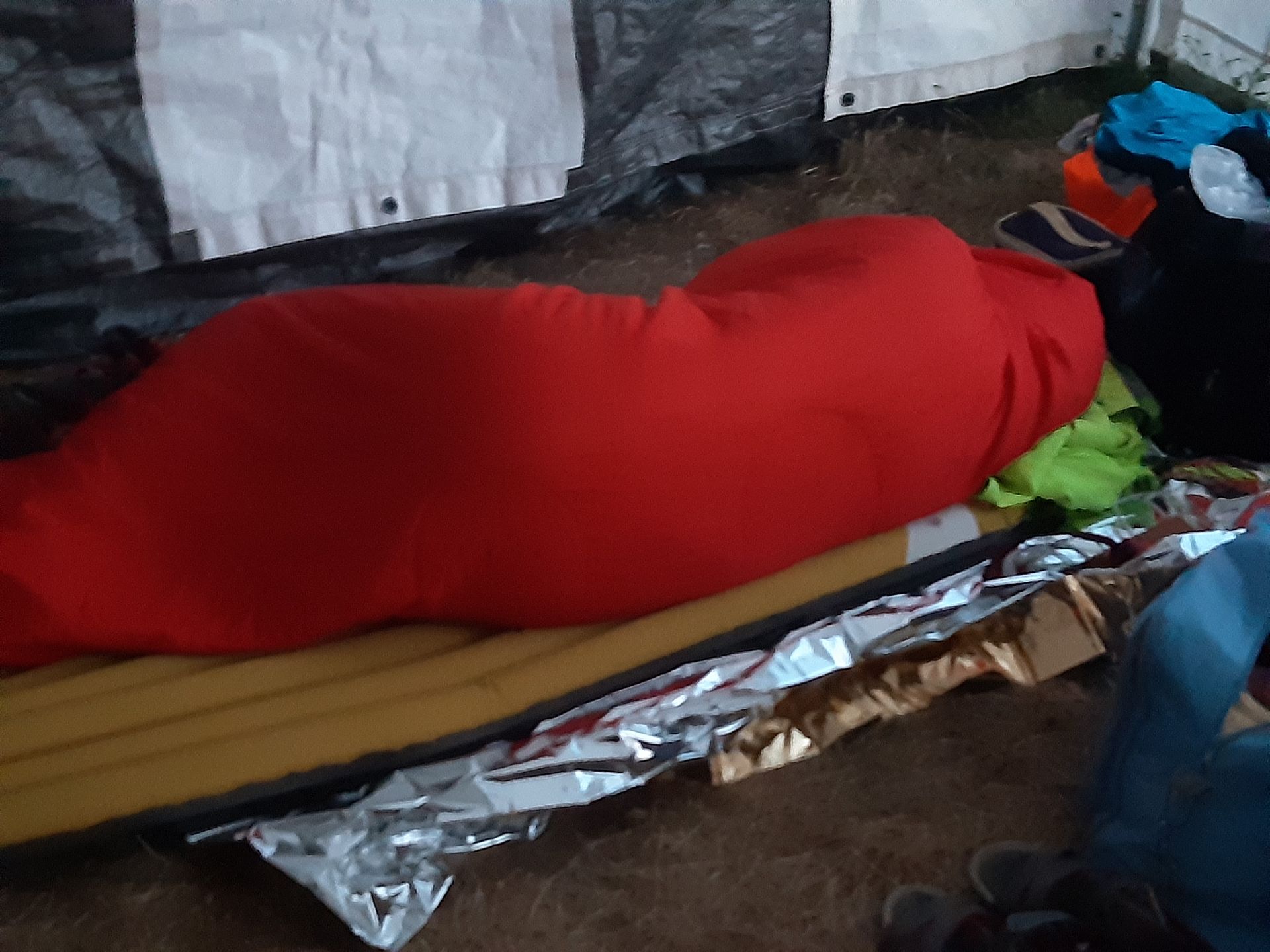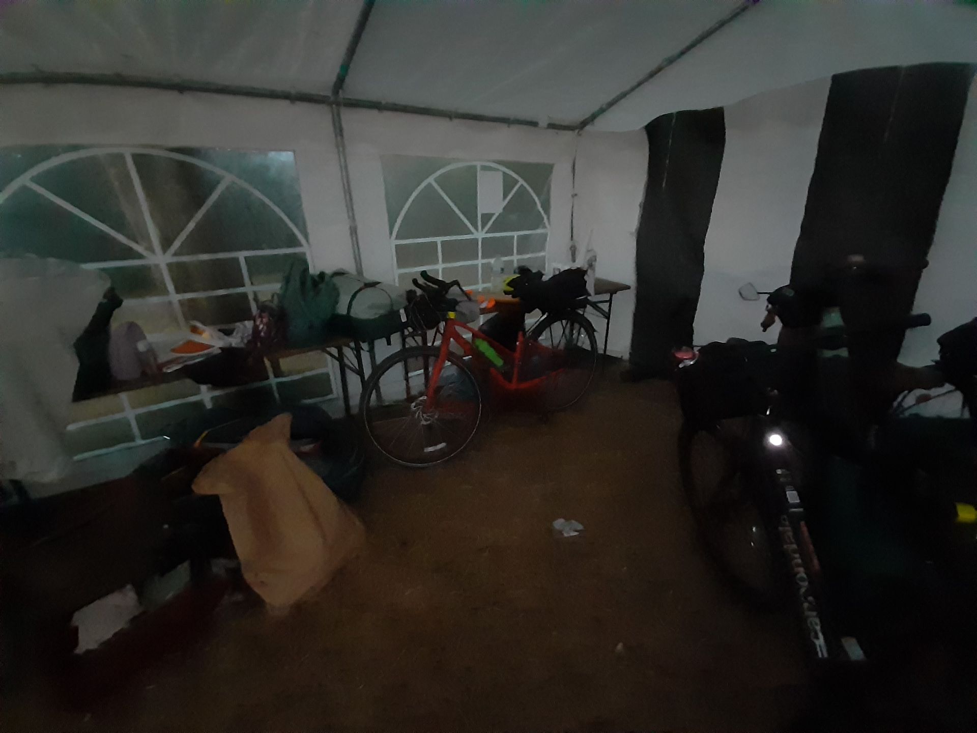 Nuitée en tente ou sous un barnum, et pas chaud du tout …Et le rangement du matin n'a pas été une mince affaire ...