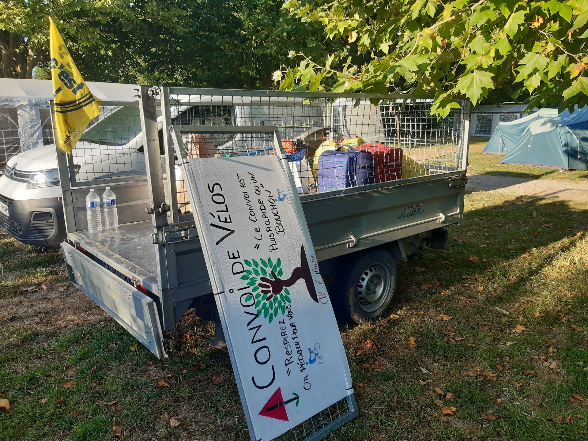 Présence de Fabien Pommi, l'enseignant qui a réalisé la roulotte avec ses élèves, MERCI à tous pour ce bel objet, bien utile pour transporter tout notre bazar !